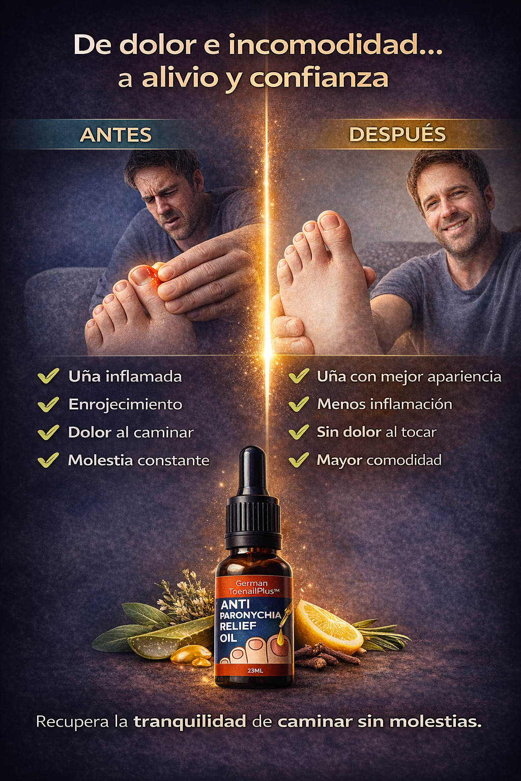 Remoja y ablanda la uña, lima suavemente impurezas y aplica 3‑5 gotas en la uña afectada. Repite 2 veces al día.